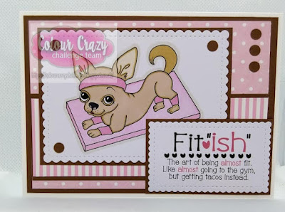 Hello - it's Helen here with my card for this week. I couldn't resist this guy doing his exercises with bright pink gym accessories! He comes from the 'iChihuahua' digi stamp set available here. I coloured the image with my Promarkers and then added some patterned paper to continue to the pink theme!